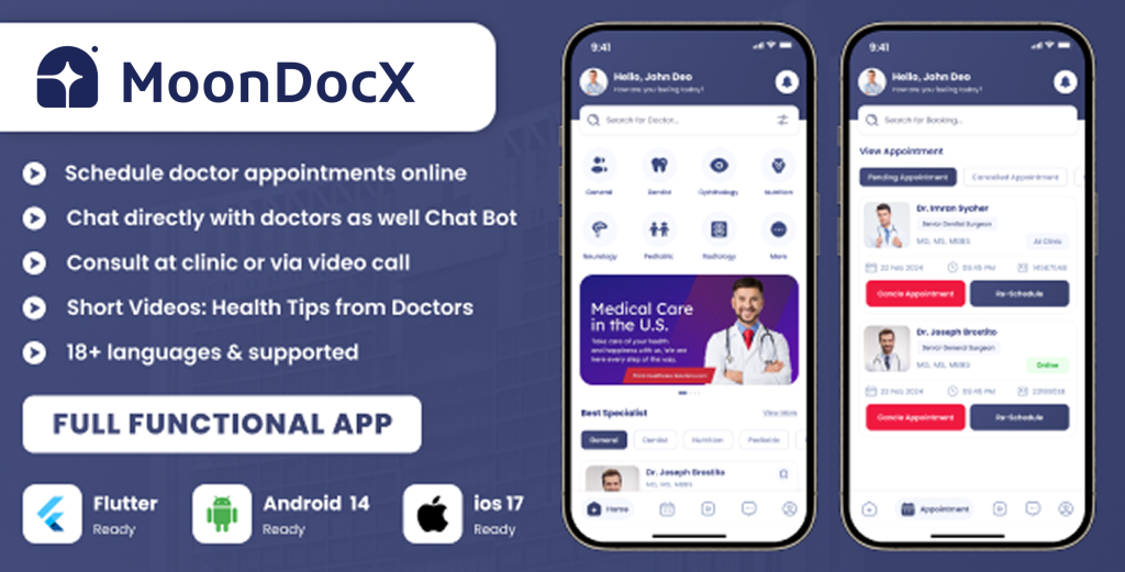 🌕 MoonDocX – Online Doctor Appointment Booking & Telemedicine Platform (Web + Android + iOS + Admin) #